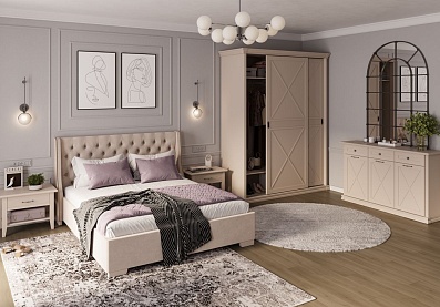 Лаконичный шкаф выполнен в точном соответствии с модными трендами: гладкие поверхности, стилизация под древесную текстуру, отсутствие фурнитуры. Широкие створки легко сдвигаются вбок одним движением руки. Алюминиевый профиль окрашен в серебристый оттенок, контрастно подчеркивающий основной теплый тон.