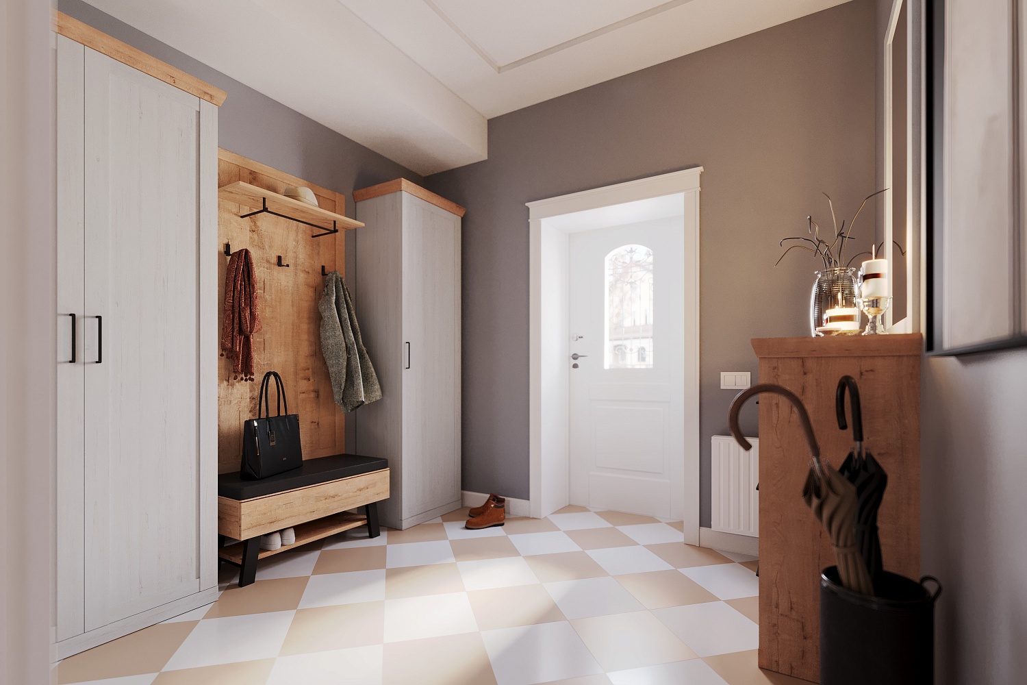 – описание: стиль современный, минимализм, цвет дуб бунратти, блан шене, назначение для прихожей.