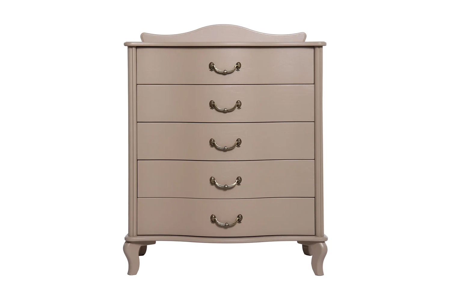 Классический комод Джульетта - воплощение вневременной элегантности и безупречного вкуса. Пять удобных выдвижных ящиков позволяют наиболее функционально использовать пространство и объем комода. Материалы, из которых выполнен комод, обеспечивают высочайшую надежность. Модель, вдохновленная лучшими традициями европейской мебели, станет изысканным акцентом в вашем интерьере. Плавные линии резных ножек-кабриолей придают комоду утонченную грацию и воздушность.