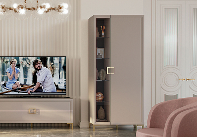 - Внутреннее наполнение: стеклополки 0,6 см за стеклянным фасадом и ЛДСП 1,6 см за глухим фасадом;
